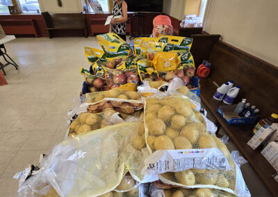Five months ago, Trinity began a program to provide groceries and other household items once a month to our community members in need. We began with 4 recipients in the Schoolhouse Manor housing development. We have expanded our effort to include approximately 24 families living in Orchard Manor Apartments. We provide paper products, cleaning products, and food