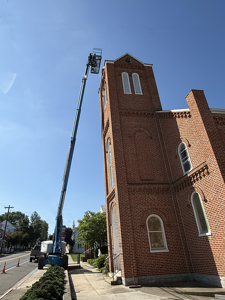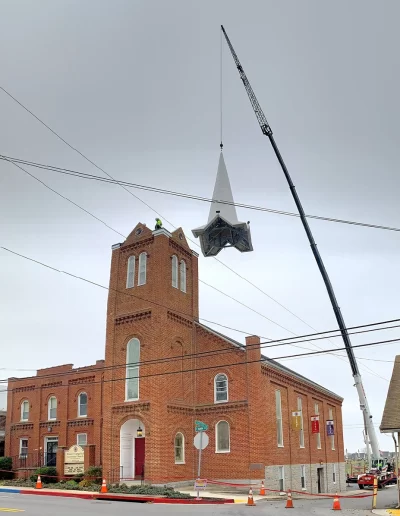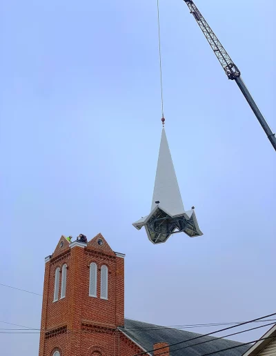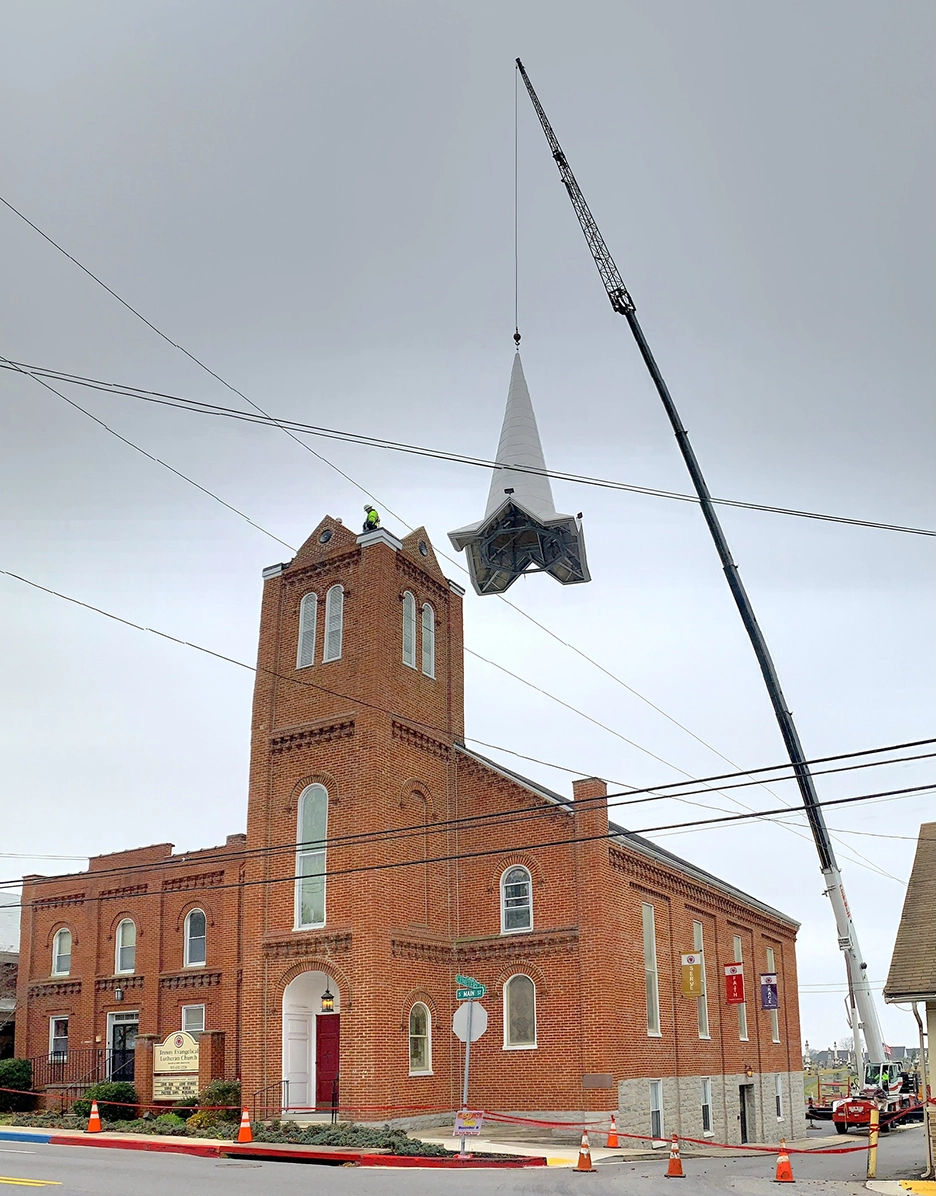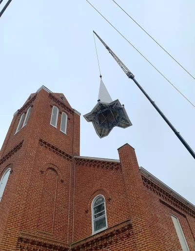 After more than 70 years, a steeple has risen once again above Trinity Lutheran Church in Boonsboro. Originally built in 1870, Trinity’s wooden steeple stood as a visual and spiritual landmark along Main Street until it was removed following a series of lightning strikes and fires. Now, with the strength and safety of modern aluminum construction, we were able to bring the steeple back—restoring not just a piece of our church’s architecture, but also a part of our town’s historic charm.