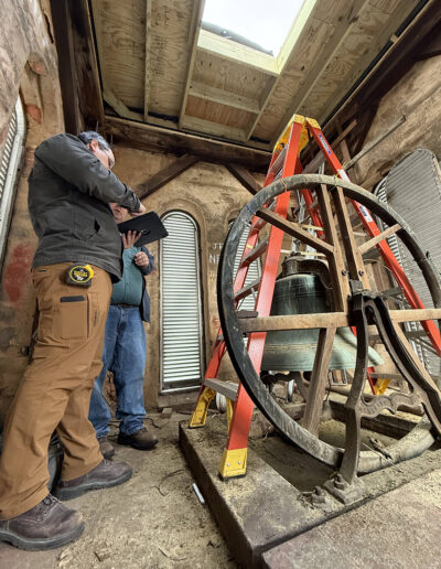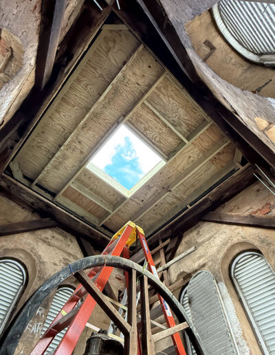 Interestingly, workers found piles of ash in the tower, evidence of the historic fires related to the original steeple. The tower also still contains the bell which Trinity rings each Sunday morning at 10:15 to announce the beginning of worship.