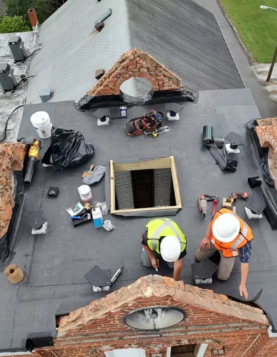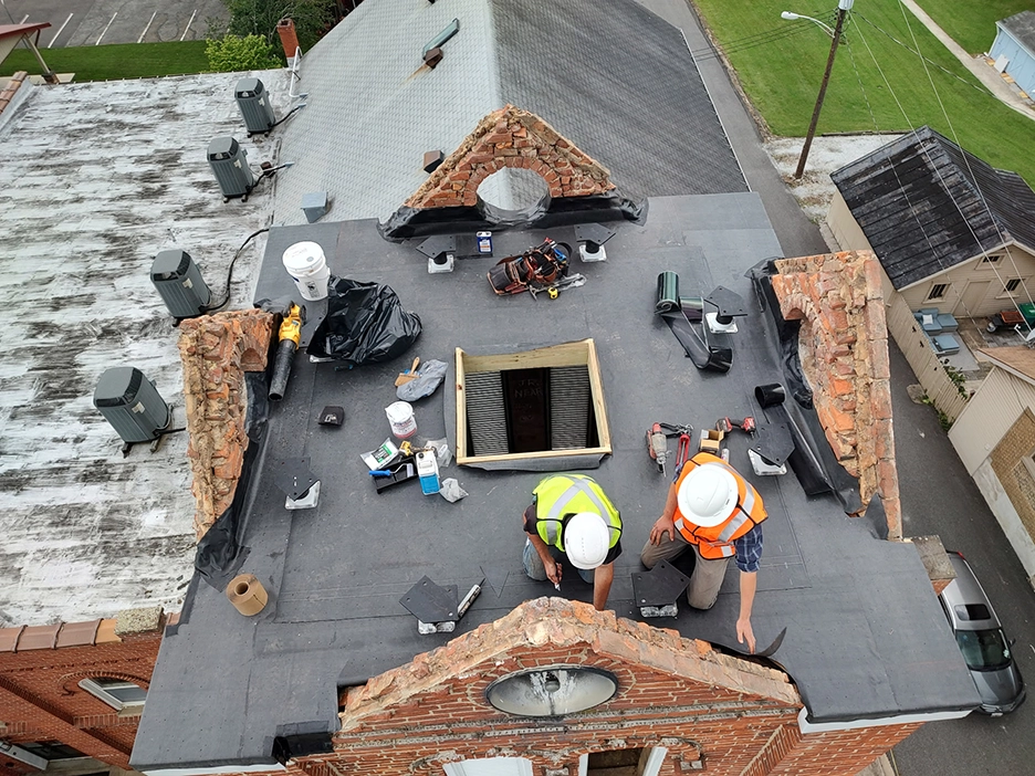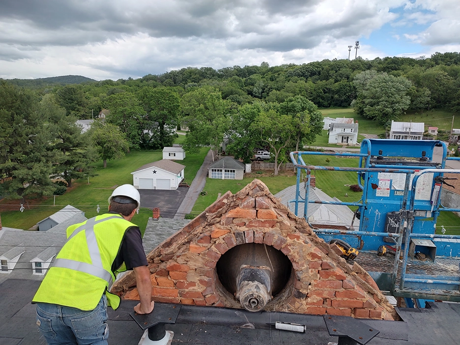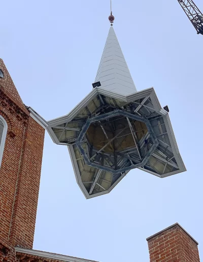 Work began in mid-May 2025 by Franklin Builders to prepare the brick tower base for the steeple, which was custom fabricated with the measurements taken. It took approximately 6 months to fabricate and deliver the steeple, which was installed on November 20, 2025.